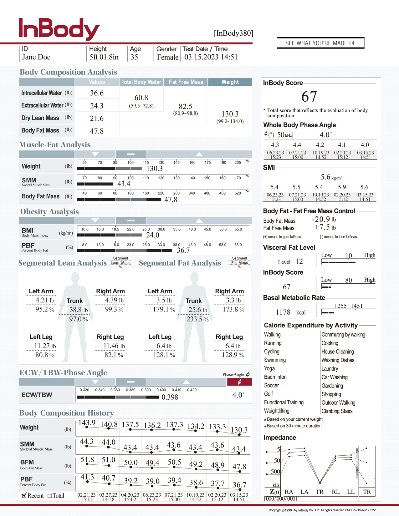 The InBody scanner provides a complete breakdown of your body composition in just 45 seconds: